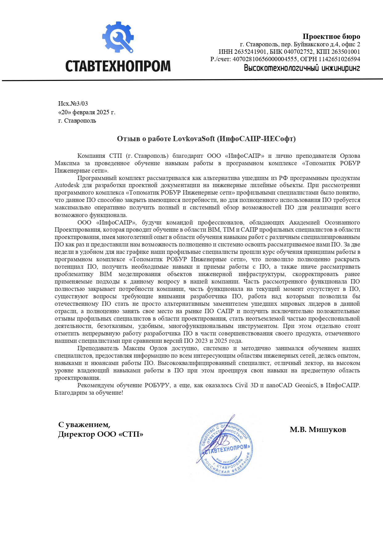 С полной уверенностью Академия Осознанного Проектирования заявляет, что Топоматик Робур Инженерные сети – это лучшая САПР для проектирования внешних сетей. Это аналог AutoCAD Civil 3D и Autodesk REVIT одновременно. Топомотик Робур Инженерные сети – полностью адаптирован под российские нормы. Мы уверены, что Вы приятно удивитесь, когда перейдете с привычных зарубежных CAD и BIM систем на Топоматик